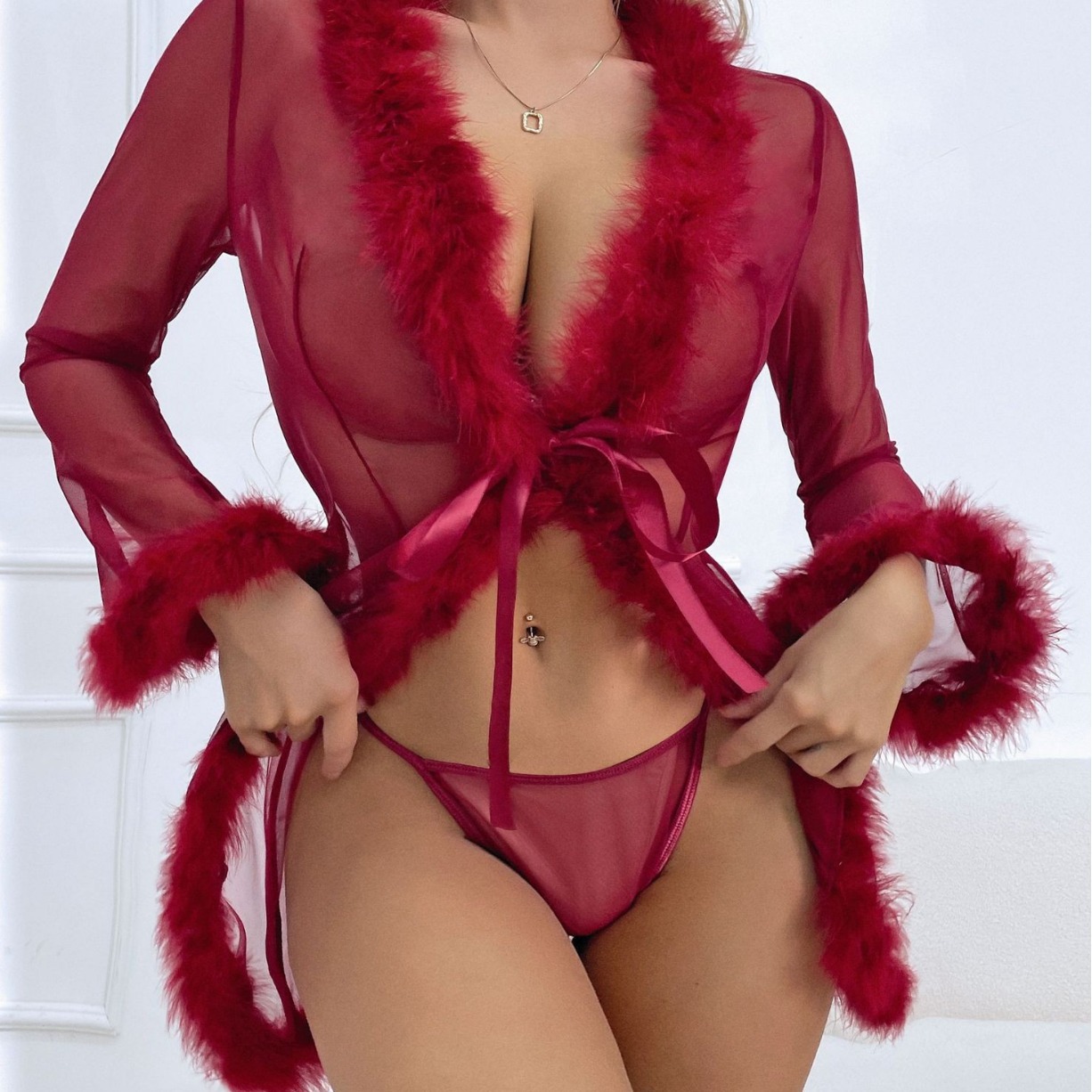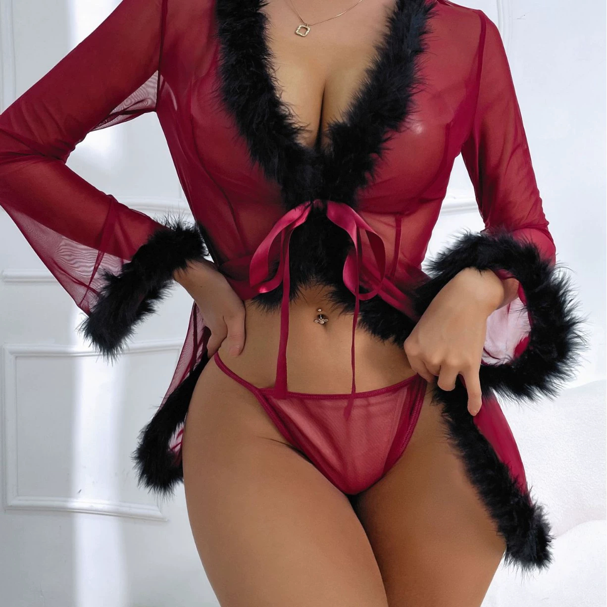 - Satin ribbon waist tie for adjustable fit and seductive styling