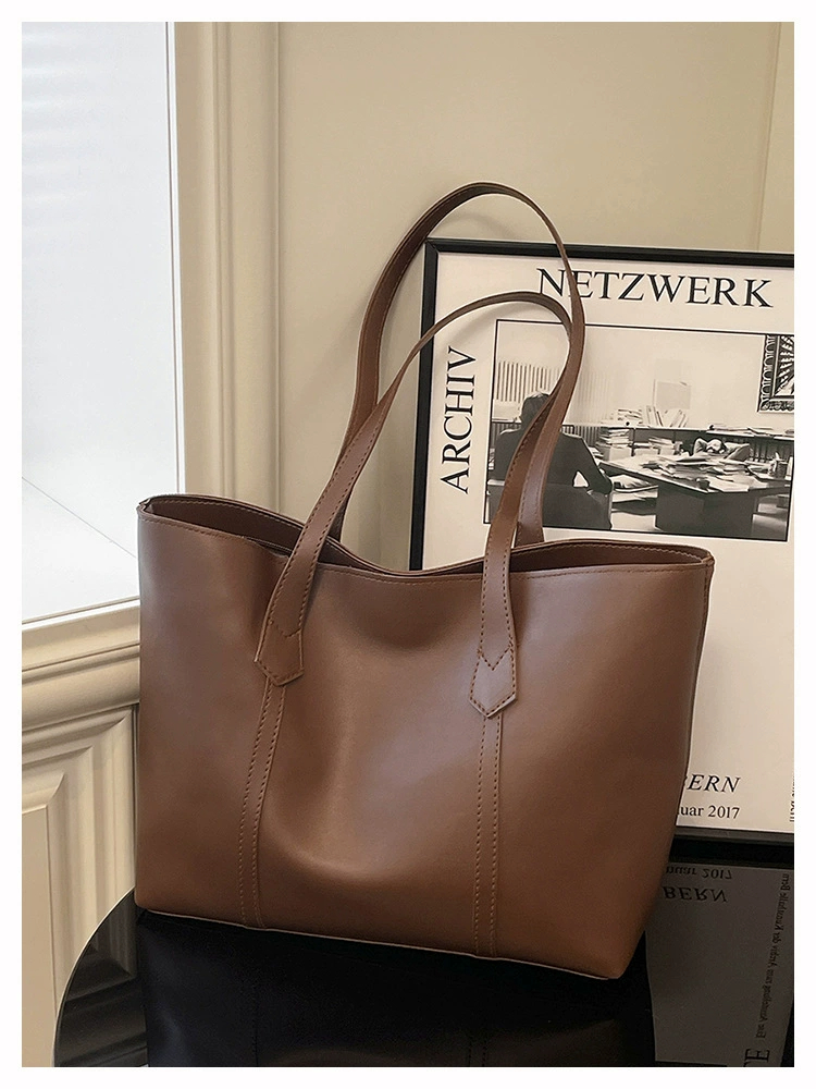 Women’s PU Leather Tote Bag – Korean Style Medium Handbag with Soft Handle