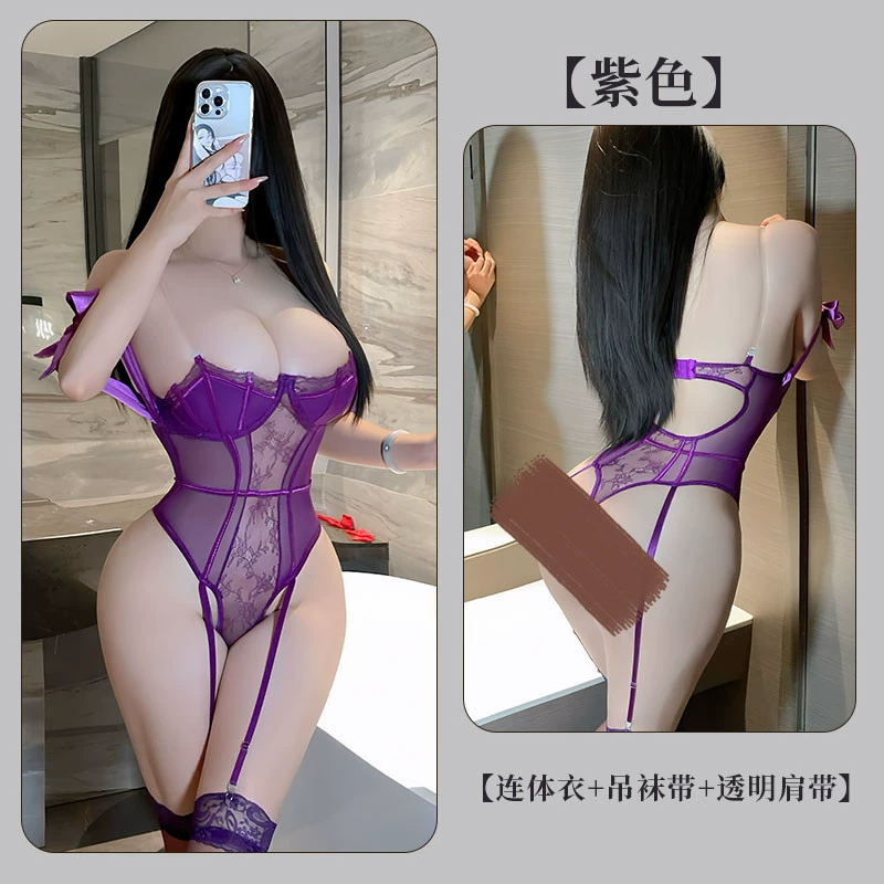 - Sheer mesh bodysuit with leg stocking, alluring cutout and strappy design.